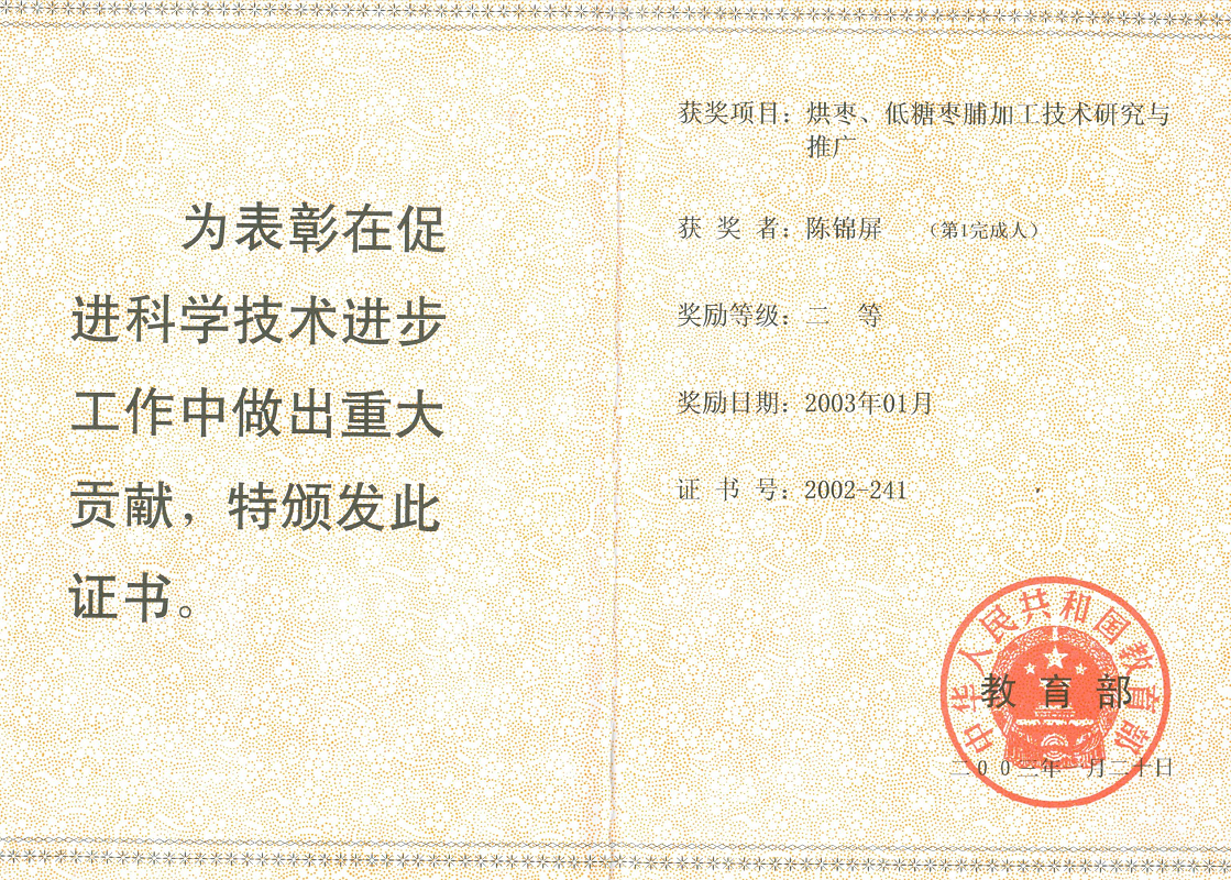 陈锦屏同志,女,汉族,湖南省益阳县人,教授、博士生导师。西北农学院毕业后留校,一直从事食品科学与工程学科的教学、科研、生产工作。1985年至1993年任首届西北农业大学食品科学系系主任。1997年调入52av ,任食品科学系系主任。陕西省委、省人民政府决策咨询委员会特邀委员,陕西省果蔬深加工技术研究中心主任,1991年任教授,1993由国务院学位委员会批任博士生导师。 自1988年开始至今,已培养了42名硕士研究生,16名博士研究生。主讲的“果品蔬菜加工学”,获省优秀教学成果一等奖。先后6次分别获部(省)级“优秀教师”称号。陈锦屏同志主持完成了国家及部(省)级下达的科研课题18项,发表学术论文180多篇。主持的“果品蔬菜人工干制技术研究与推广”课题,在全国15个省市推广应用,产生了显著的经济效益和社会效益。 |